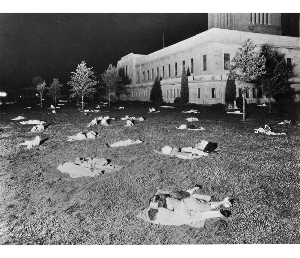 During the Depression in the mid-1930's, the summer heat was especially terrible. Air conditioning didn't exist, so many Lincoln people came to the Capitol at night and slept on the lawn as a way of keeping cool.