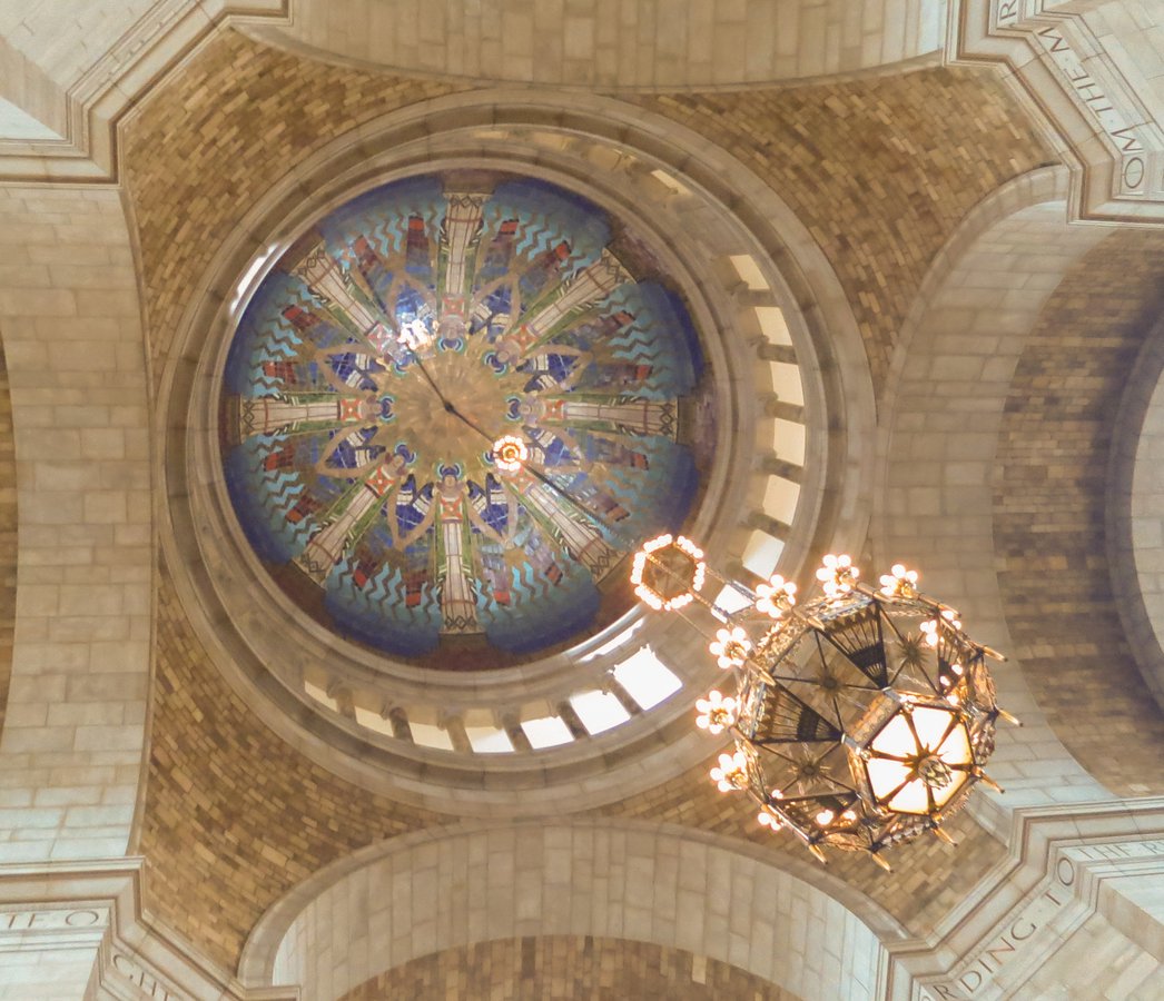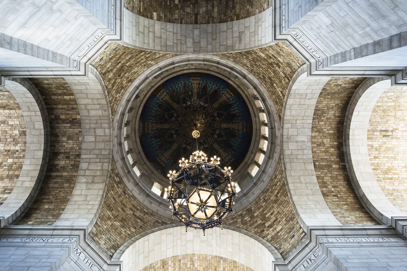 The chandelier has 136 light bulbs, weighs 3500 pounds, and has symbols of corn and arrows to represent Native Americans. It’s lowered once a year and all the light bulbs are changed; then it’s hand cranked back up into place. If the Rotunda is showing us Nebraska’s resources and the corn represents the plants we eat, what do the arrows represent?