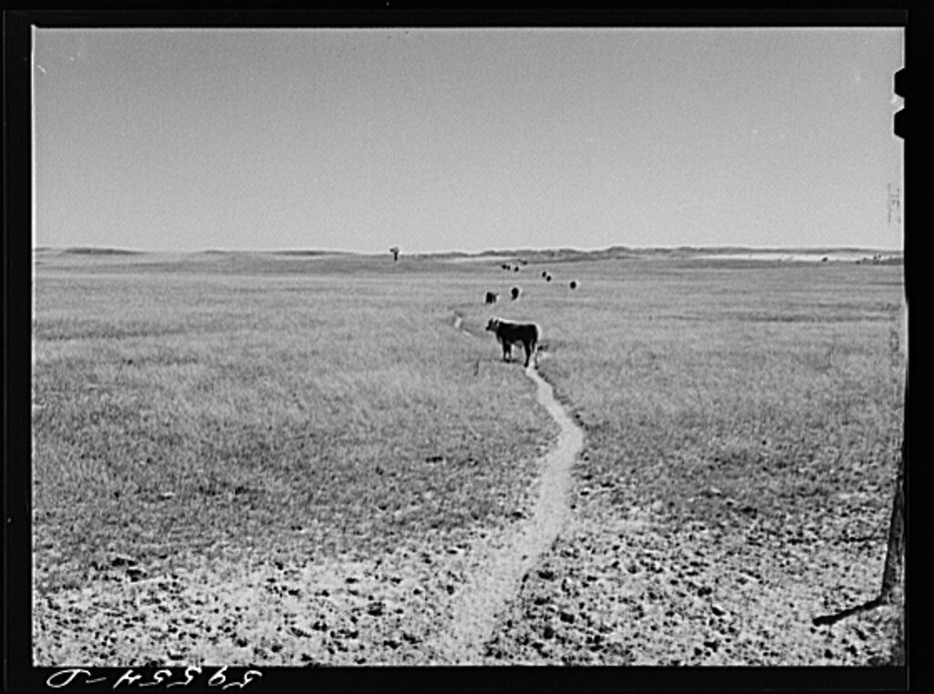 Air-- in the form of wind-- erodedTo erode is to wear away. sandstone and blew it into Nebraska to create a unique landscape known as Nebraska's Sandhills. Wind shaped the sand into hills and ridges, and grasses grew over it and held the dunesA dune is a hill of loose sand. in place. And those grasslands became a great place to raise cattle.